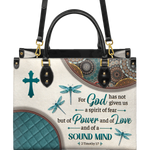 Featuring 2 Timothy 1:7, it reminds you that God has given you a spirit of power, love, and a sound mind. The graceful dragonflies symbolize transformation and faith, while intricate patterns add a touch of elegance. Designed for women who walk boldly in His truth, this handbag is a timeless statement of faith and confidence.
