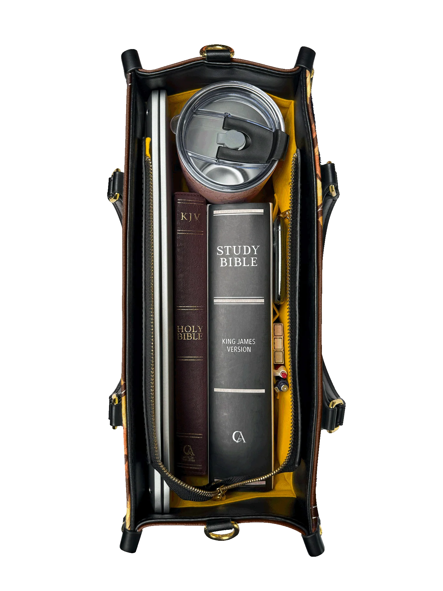 With a secure zipper closure and comfortable handles, it’s perfect for church, Bible study, work, or everyday use, keeping essentials organized and protected.