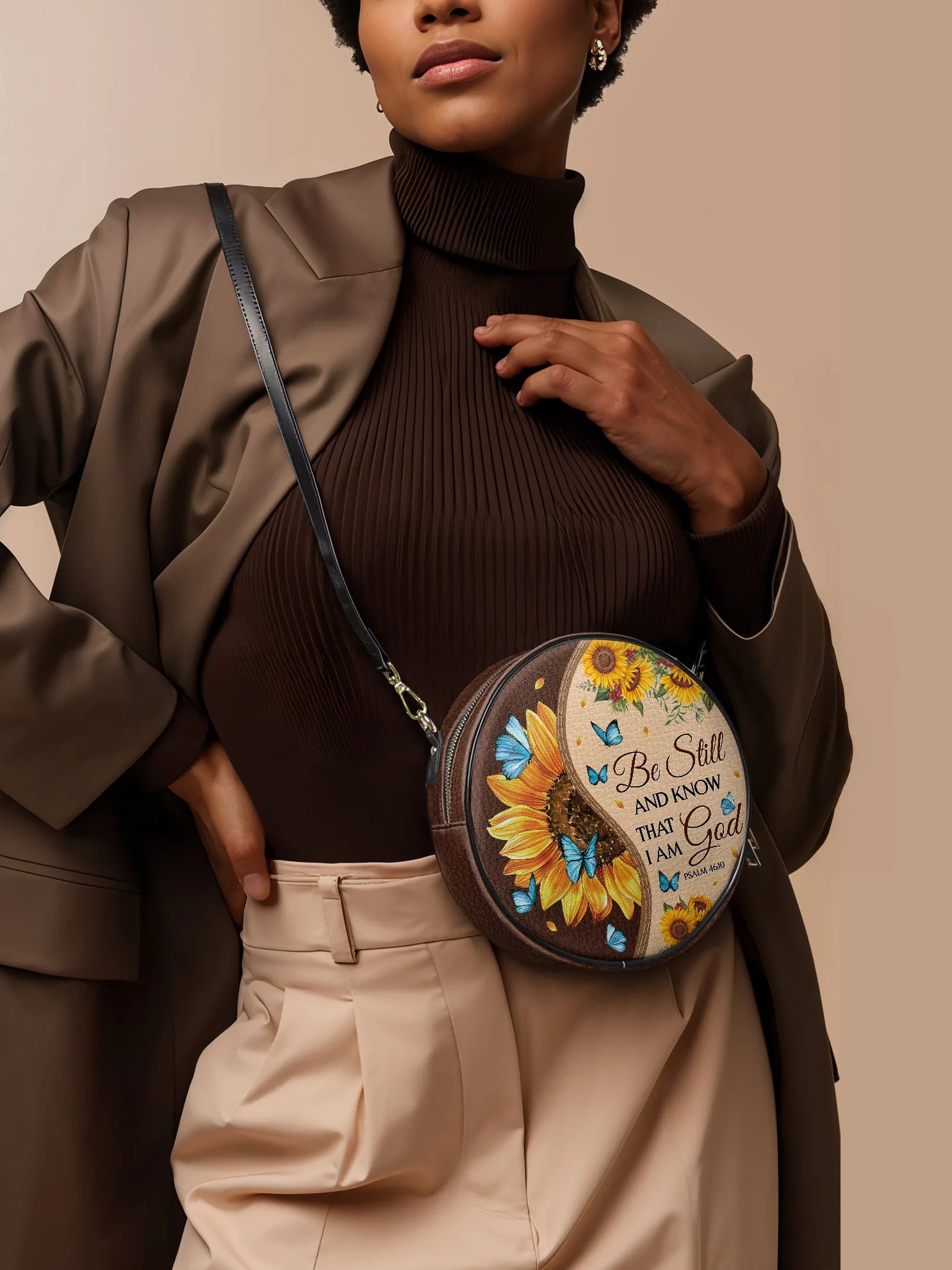 "Presence" - Psalm 46:10 Circle Crossbody Bag