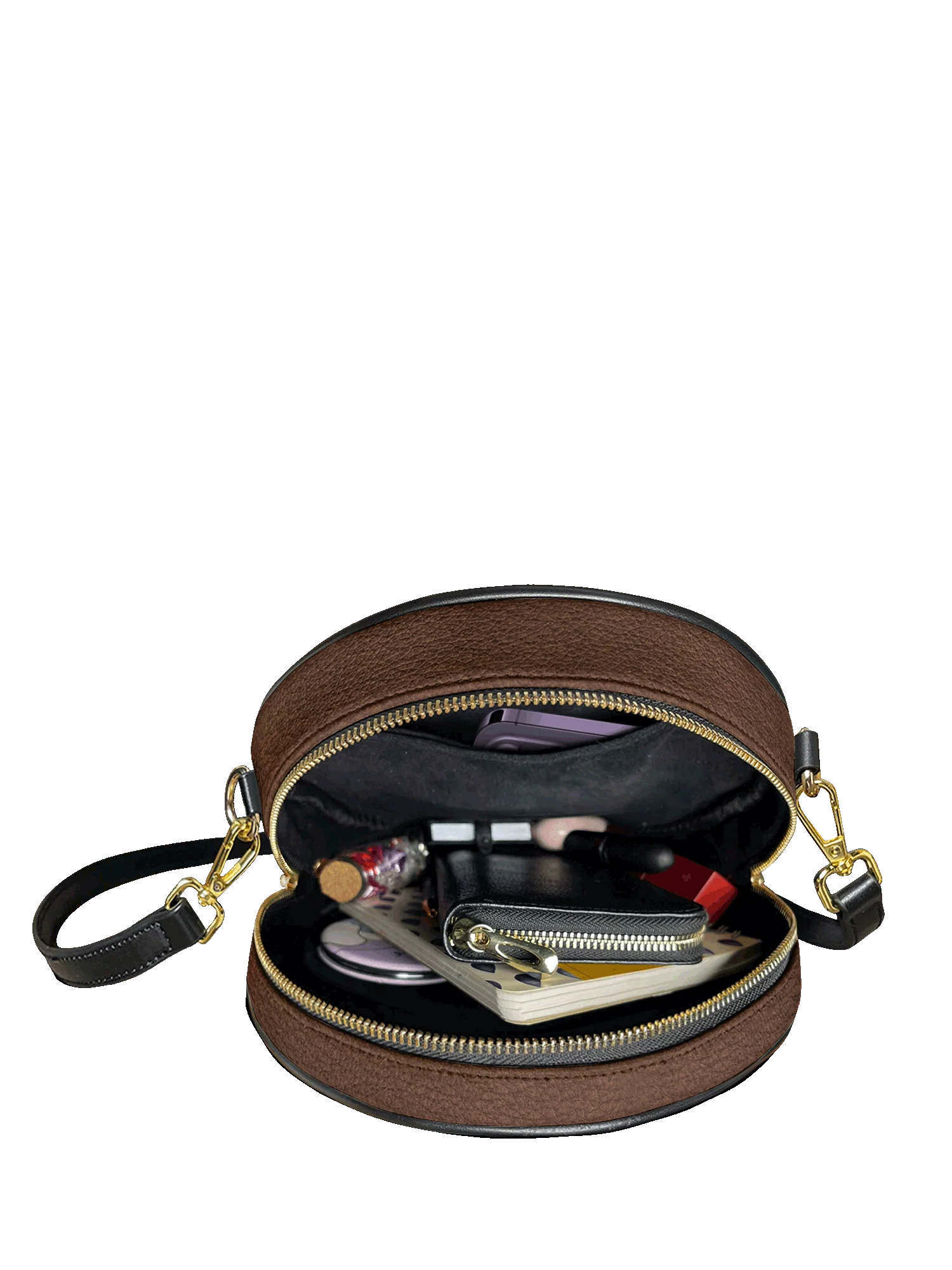 This circle crossbody bag is crafted from premium vegan leather or luxurious Italian leather for a soft, durable finish that lasts.