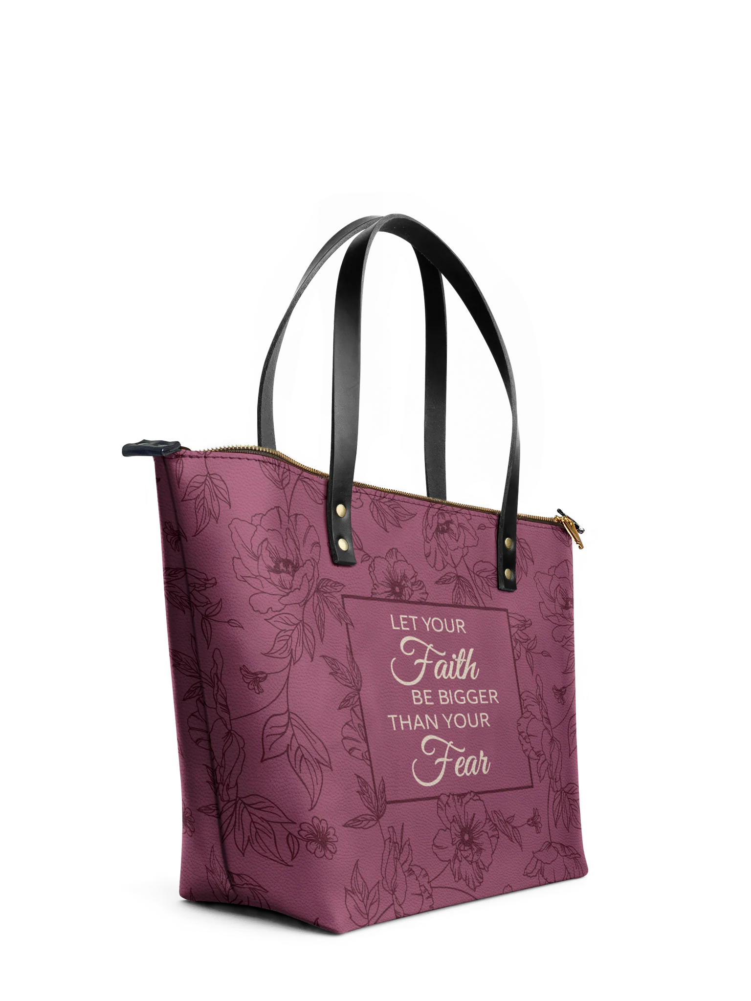 This tote bag is spacious and practical, easily fitting 2 large print Bibles, a 13" laptop, books, and daily must-haves.