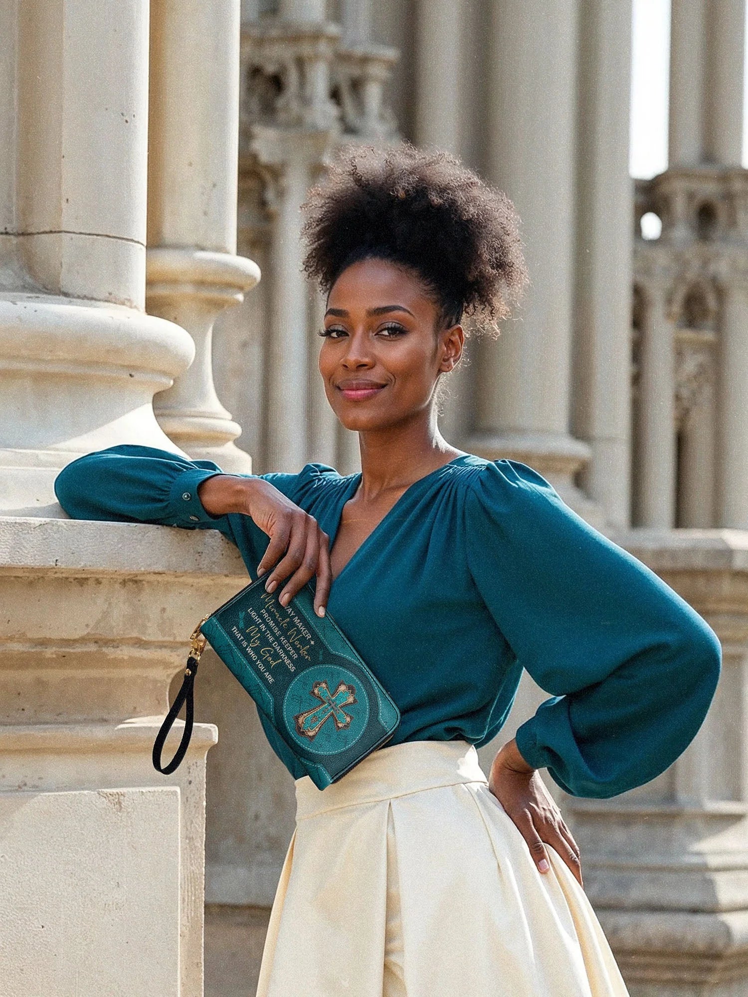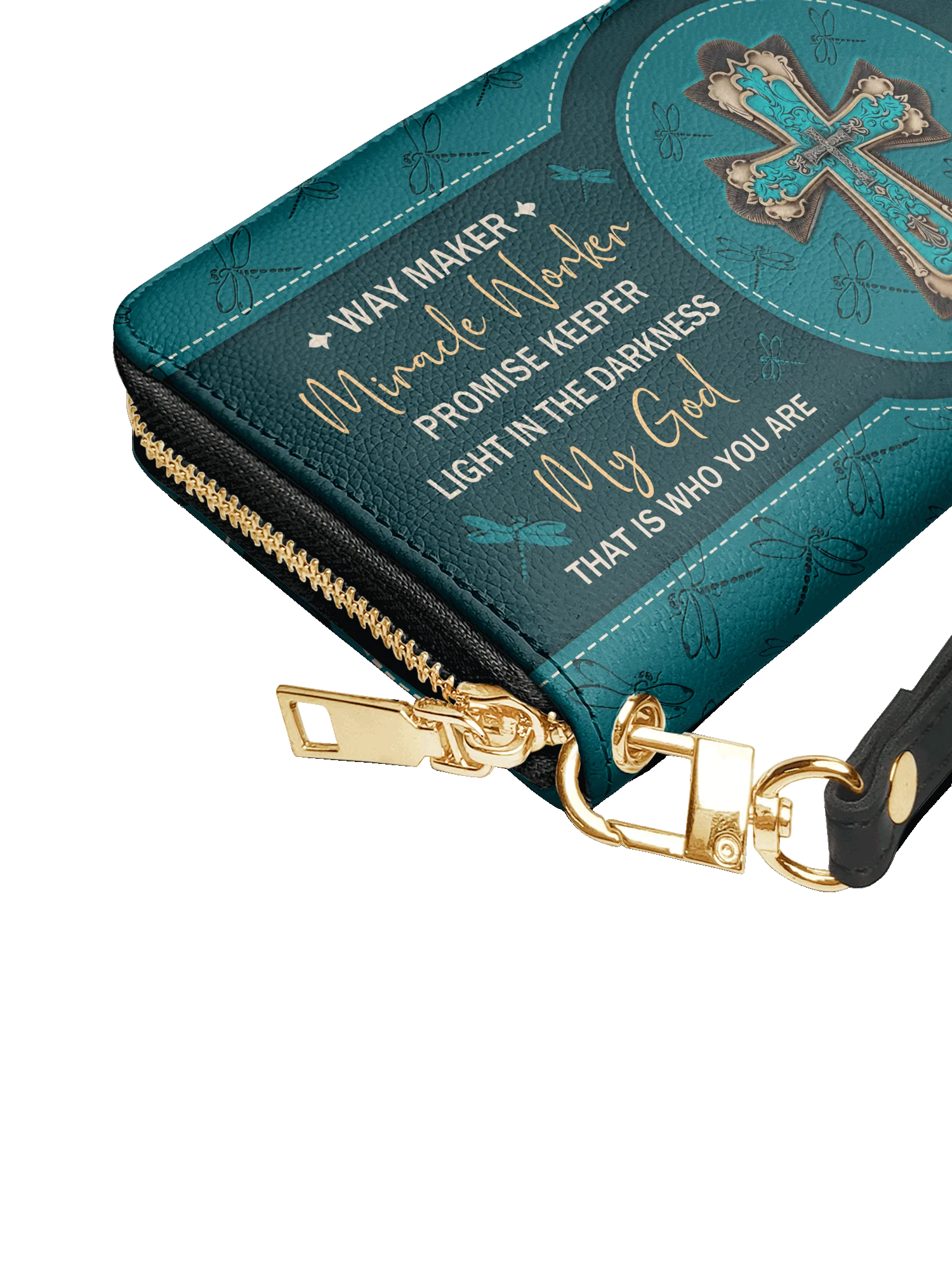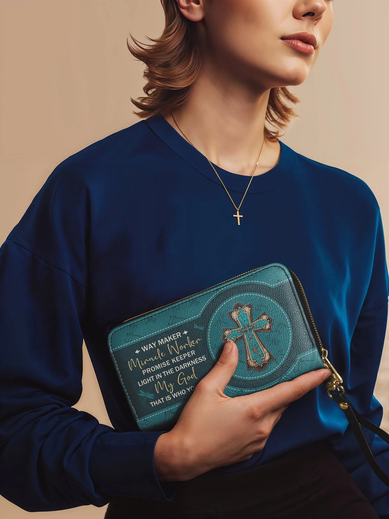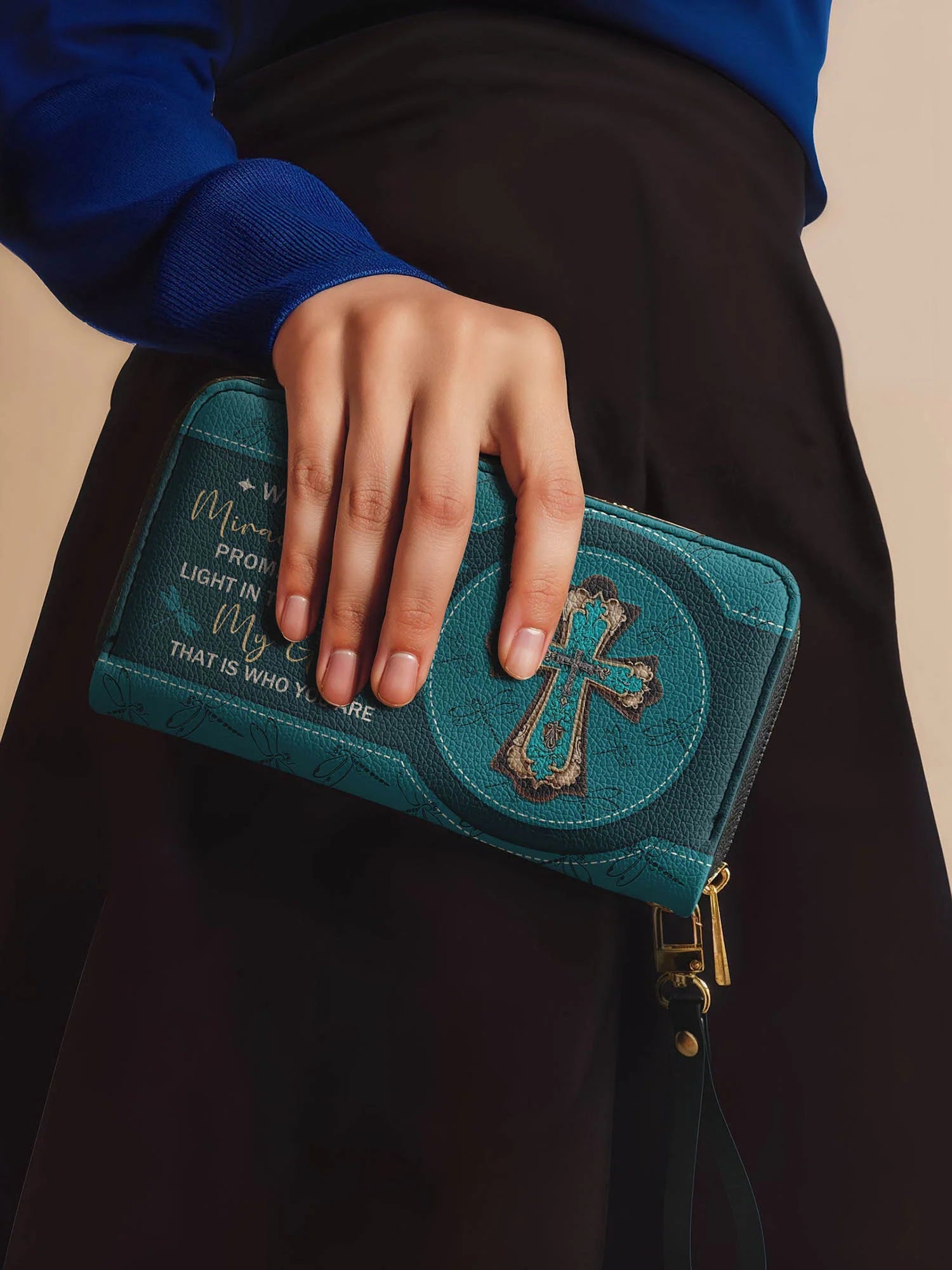 The secure zipper closure keeps everything safe, while the detachable wrist strap offers effortless carrying—perfect for work, travel, or a chic night out.