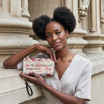 The secure zipper closure keeps everything safe, while the detachable wrist strap offers effortless carrying—perfect for work, travel, or a chic night out.
