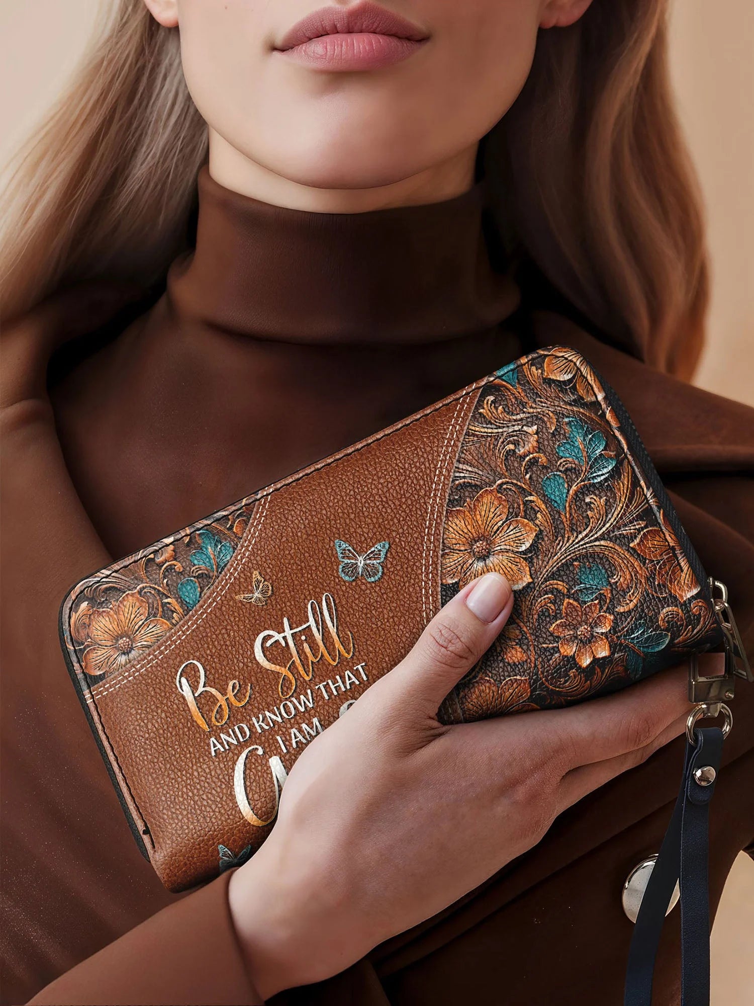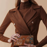 The secure zipper closure keeps everything safe, while the detachable wrist strap offers effortless carrying—perfect for work, travel, or a chic night out.
