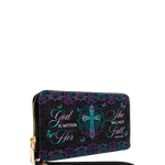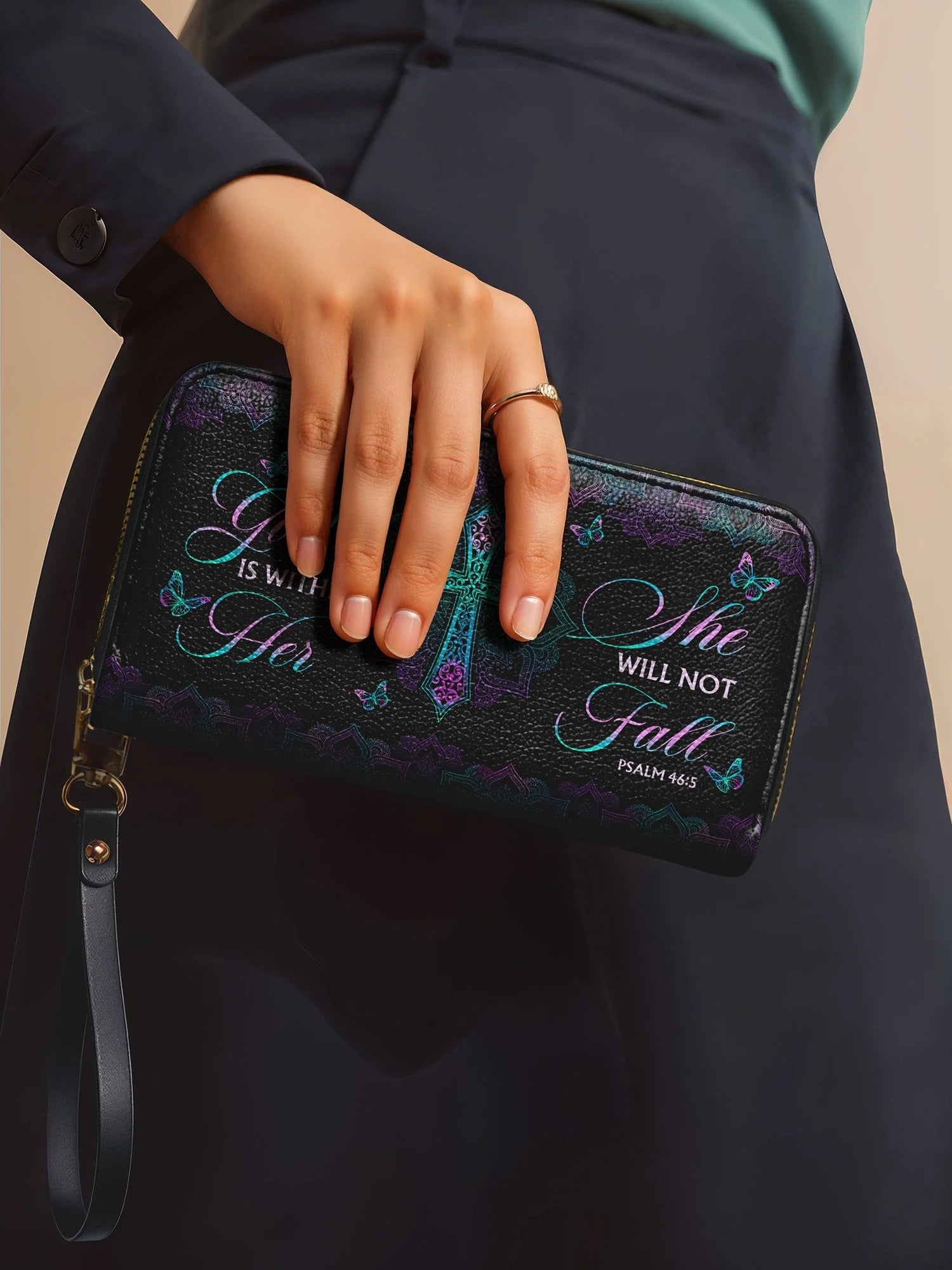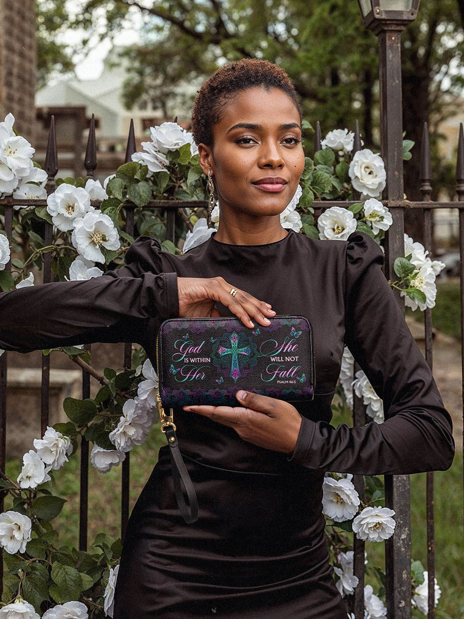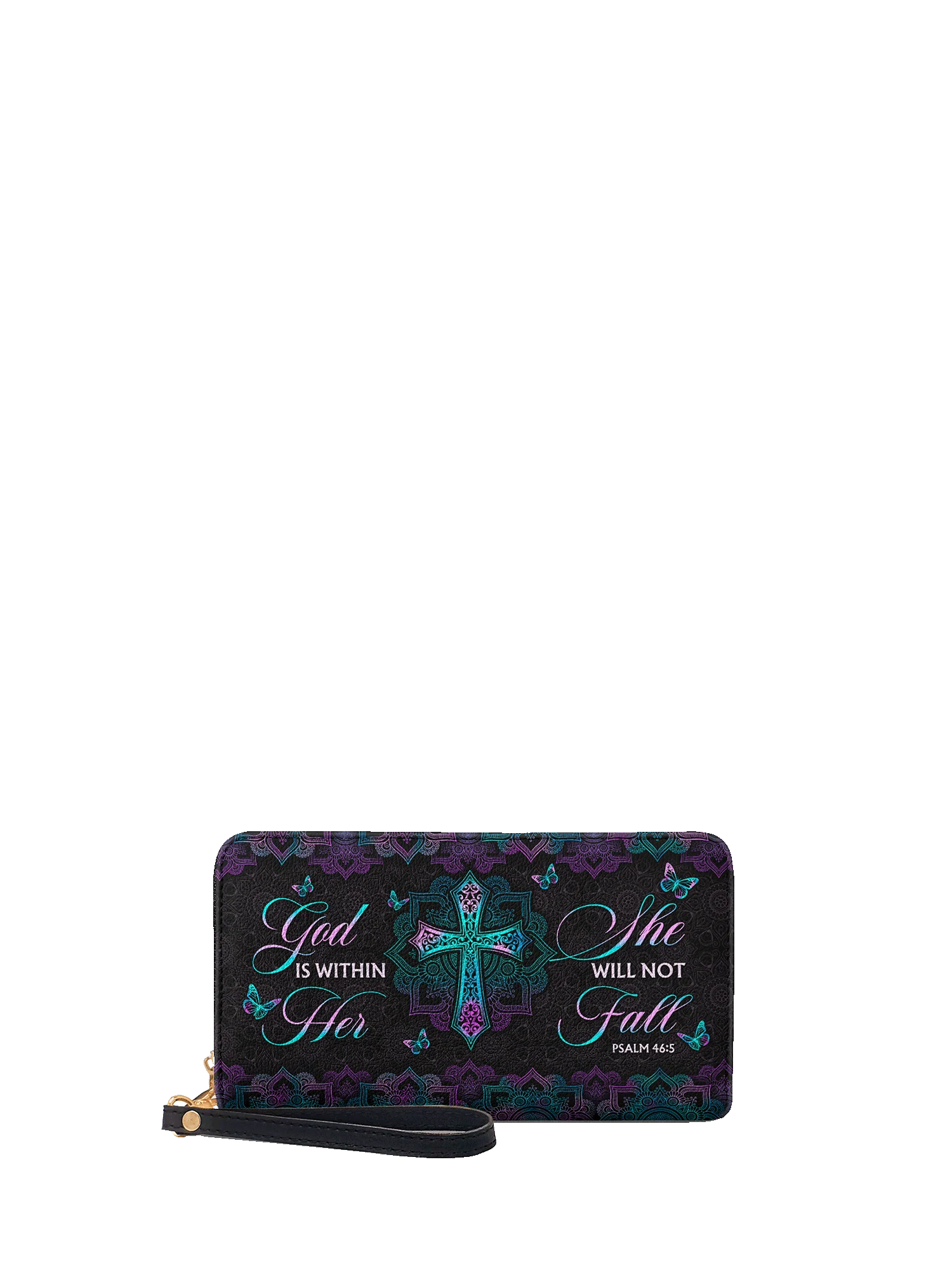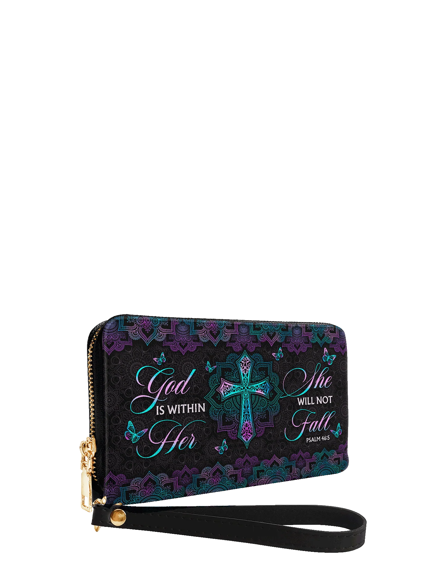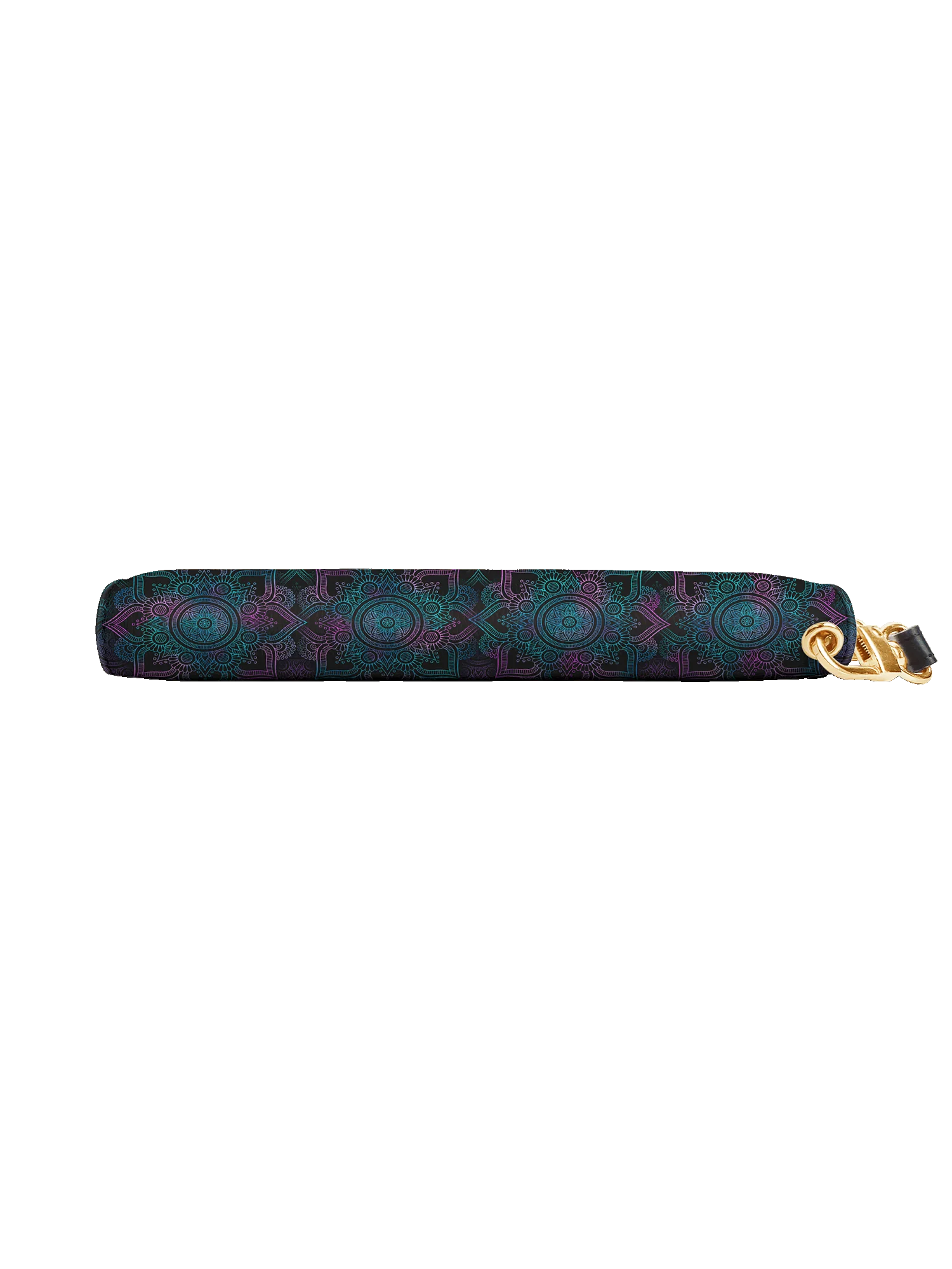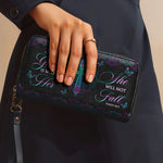 This wallet is spacious and stylish, holding beauty essentials, cash, cards, and a phone with ease.