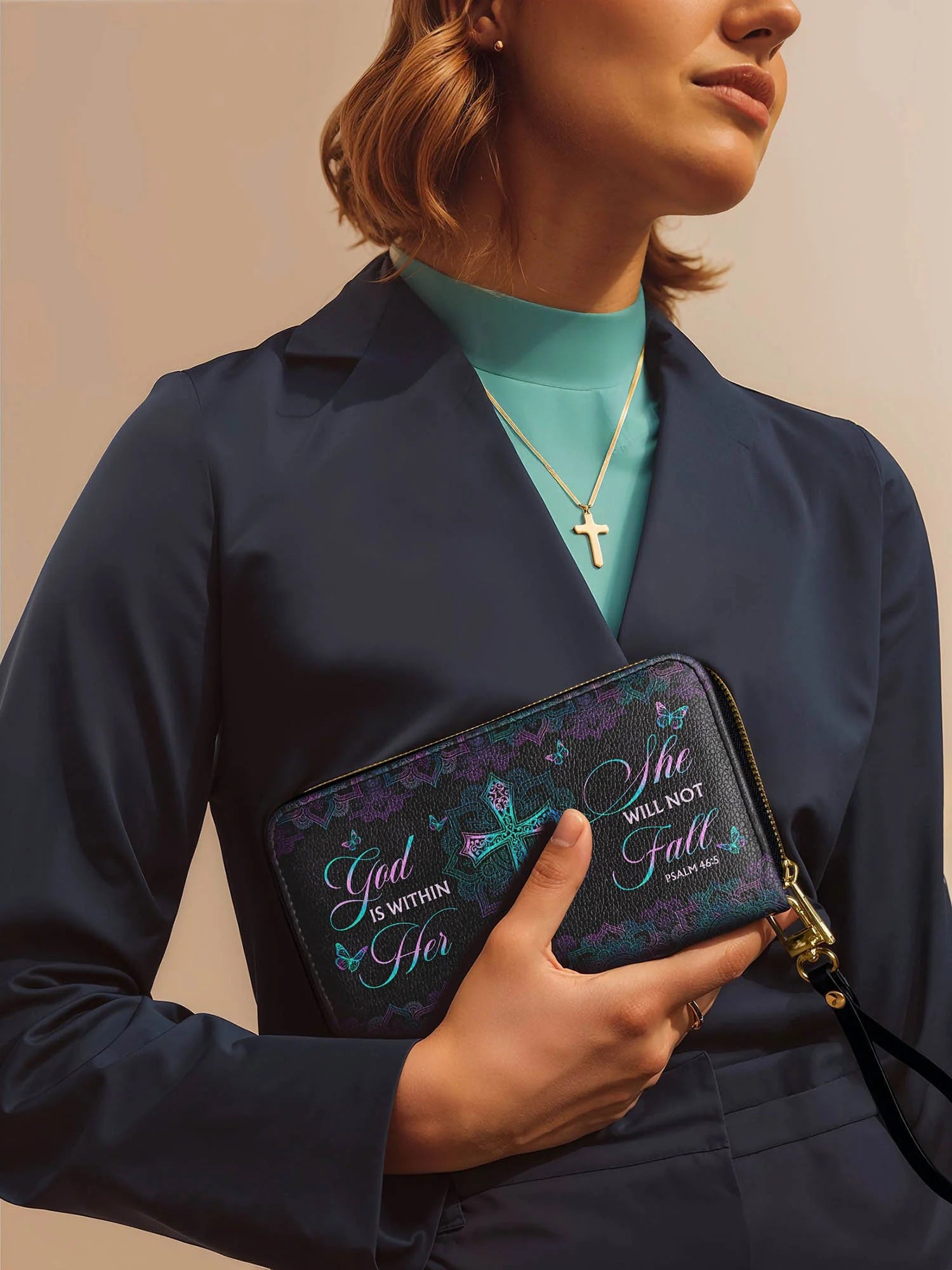The secure zipper closure keeps everything safe, while the detachable wrist strap offers effortless carrying—perfect for work, travel, or a chic night out.