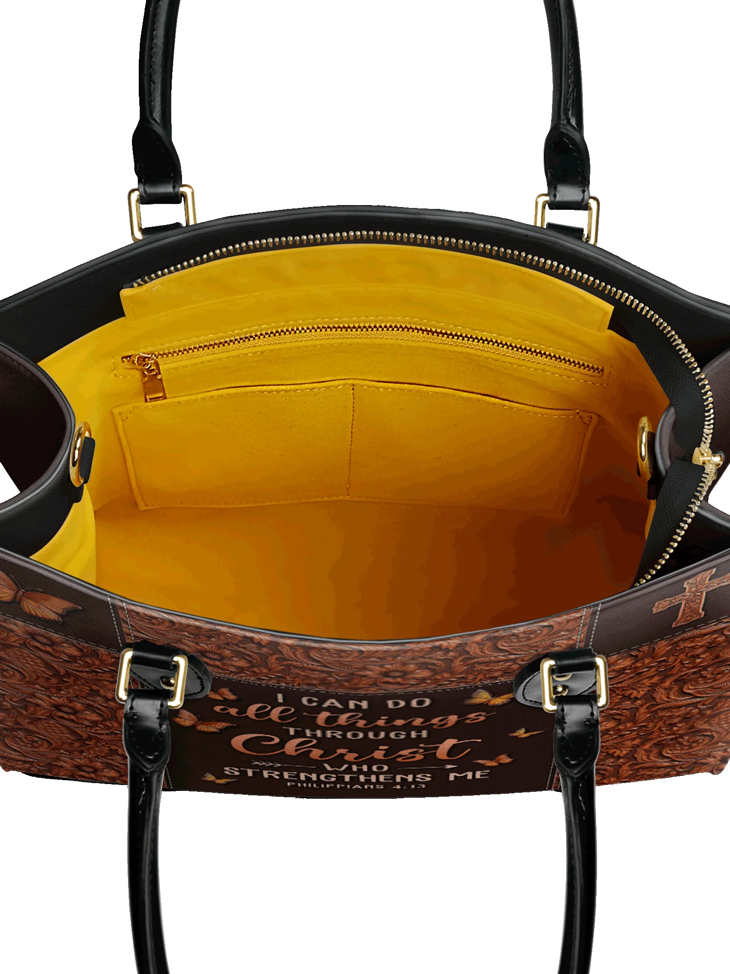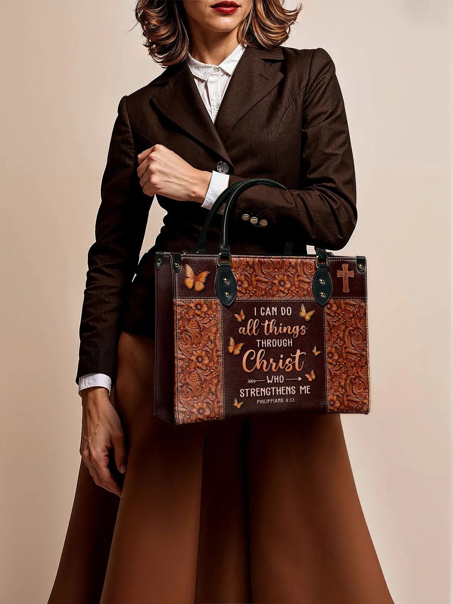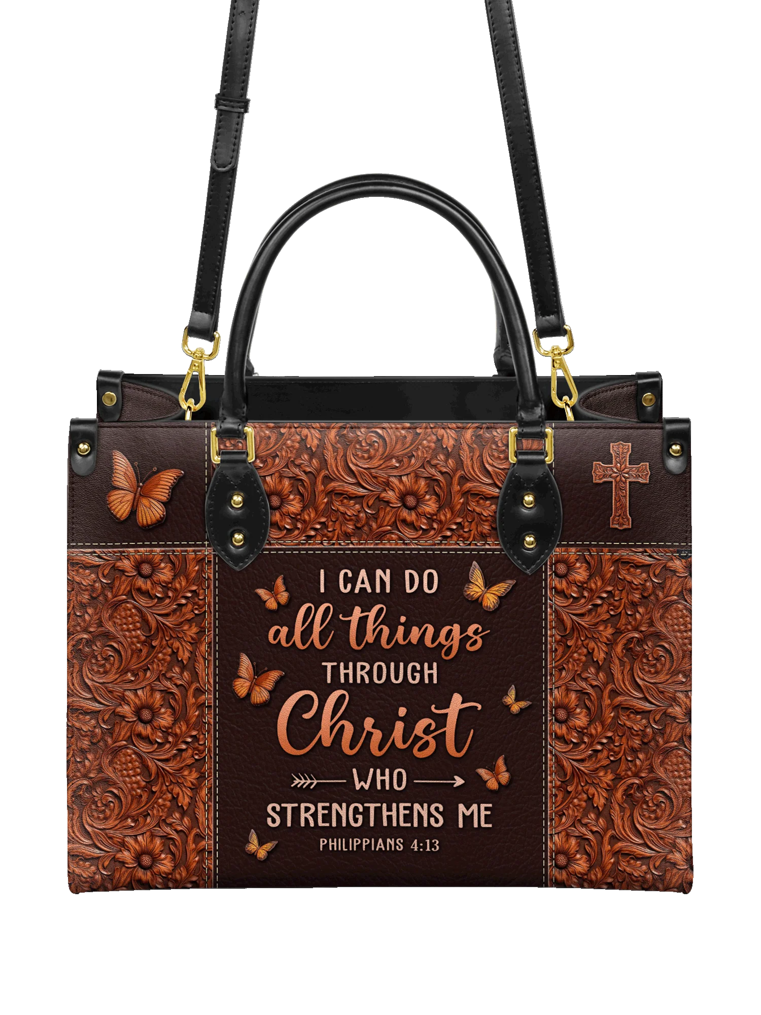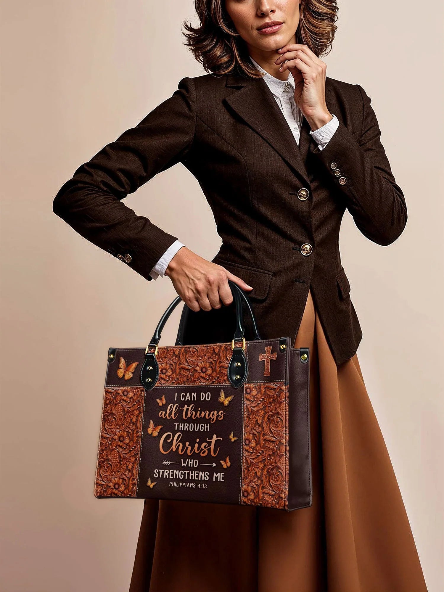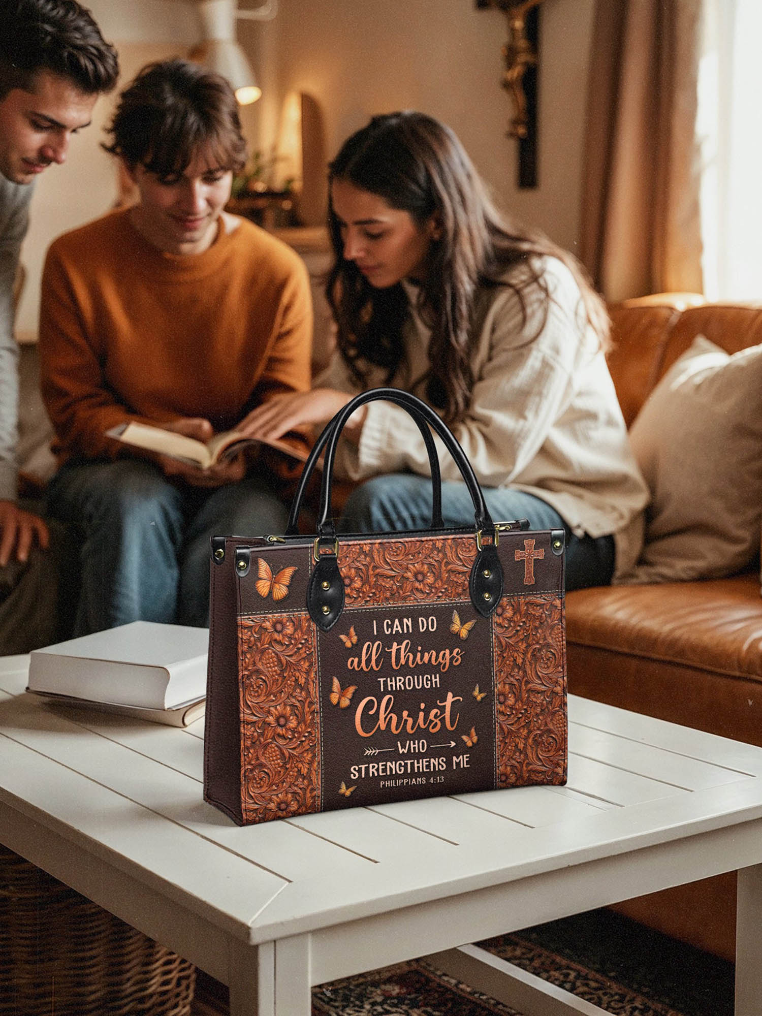 Inspired by Philippians 4:13, it serves as a reminder that with Christ, all things are possible. The rich leather detailing and timeless design embody quality craftsmanship, making it a graceful expression of faith and confidence in God’s power.