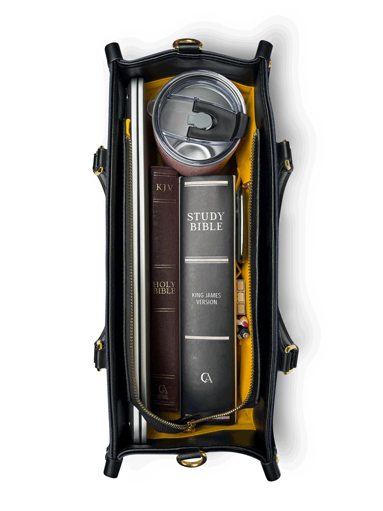 With a secure zipper closure and comfortable handles, it’s perfect for church, Bible study, work, or everyday use, keeping essentials organized and protected.