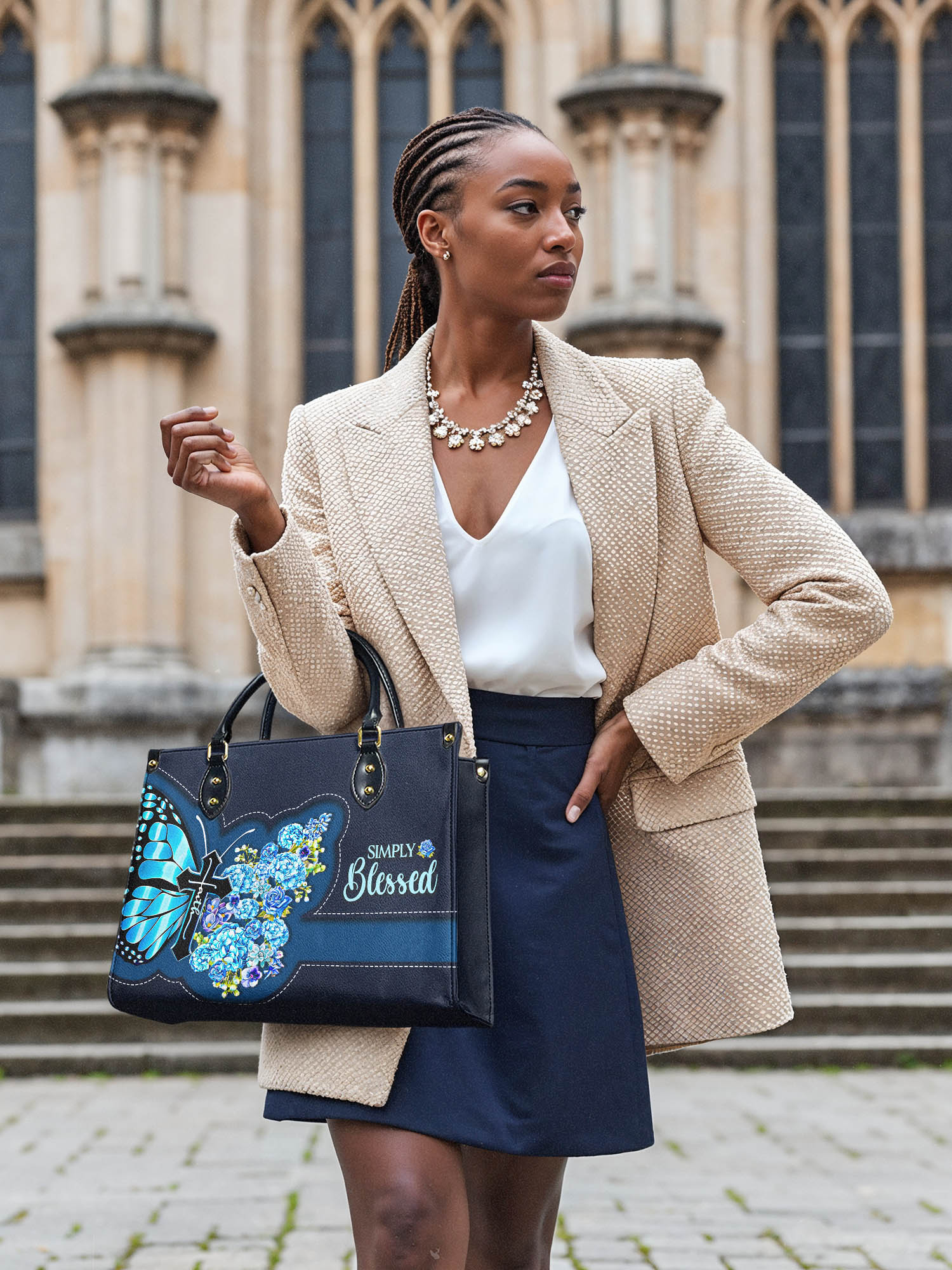 A heartfelt expression of gratitude, this handbag reminds you that a life of faith is simply blessed.
