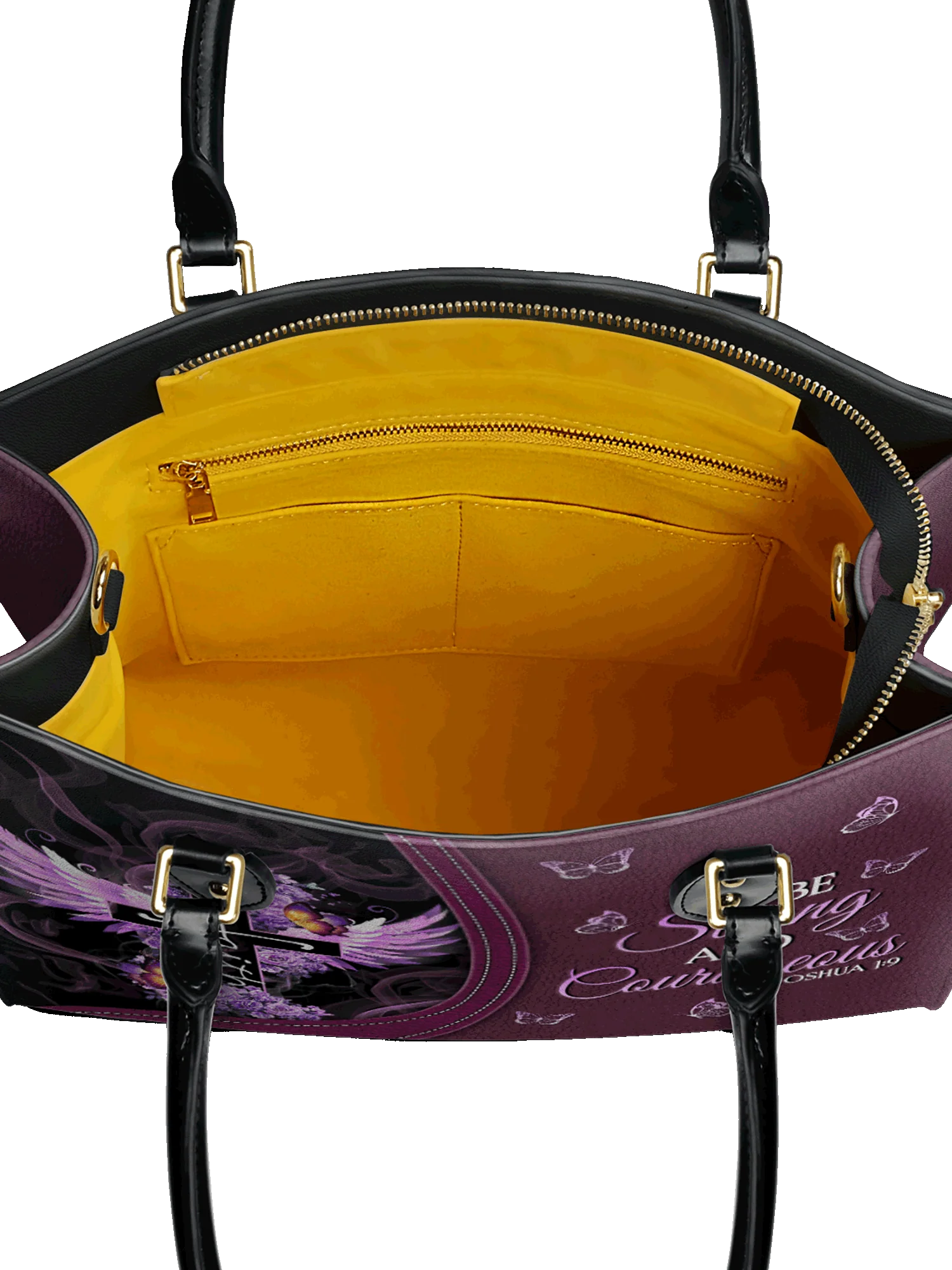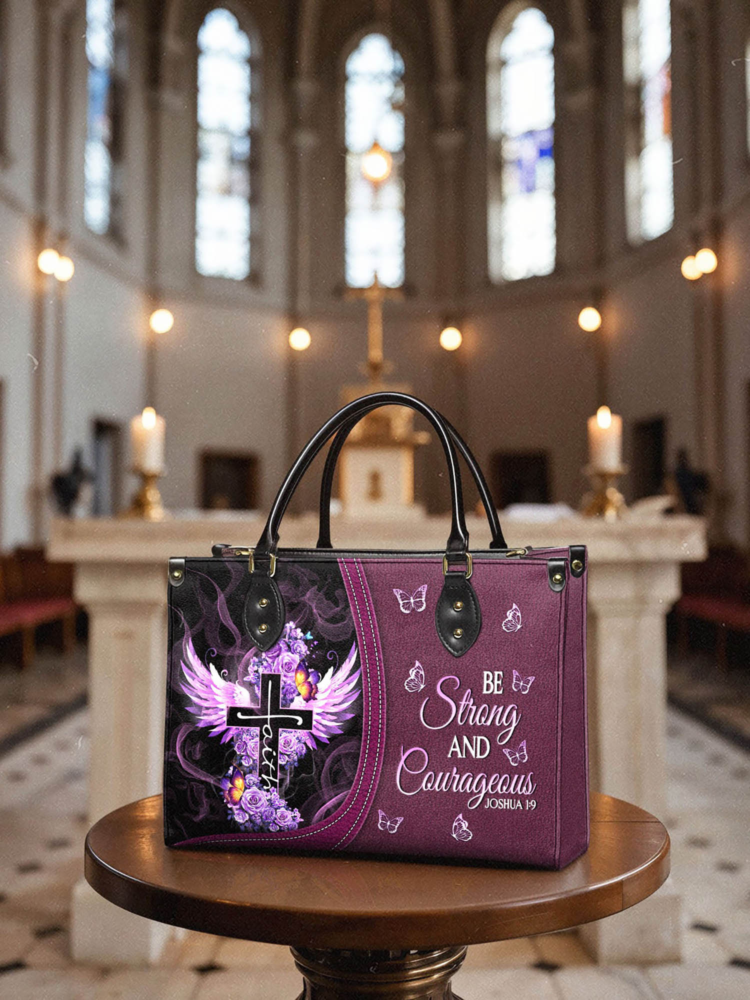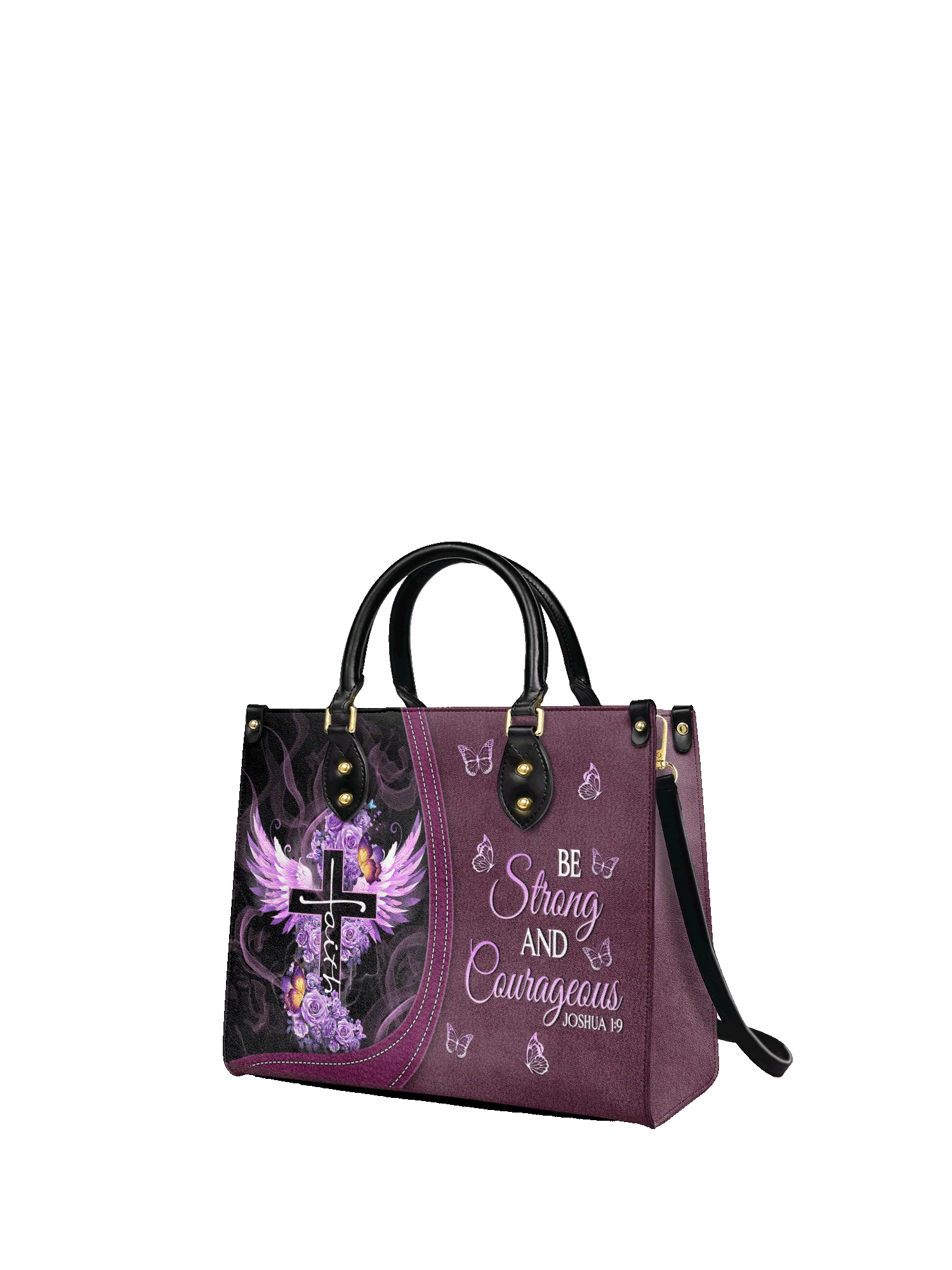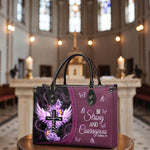 Strength and faith go hand in hand with this elegant handbag, inspired by Joshua 1:9.