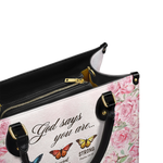 This handbag is spacious yet stylish, fitting up to 3 Bibles, a 14" laptop, books, wallet, and more.