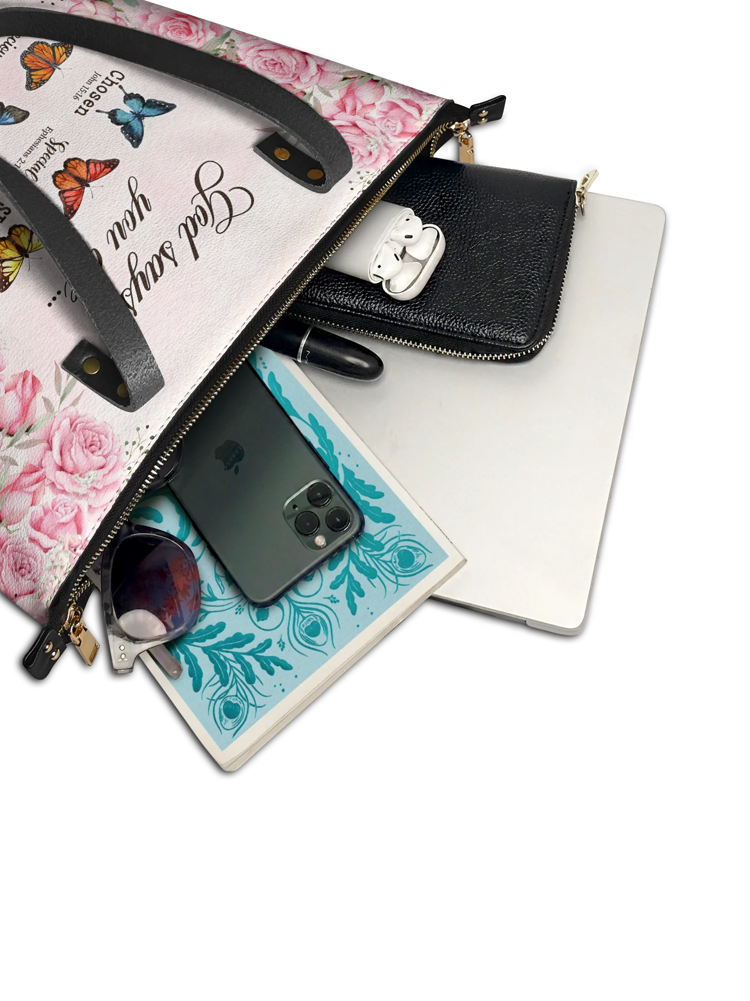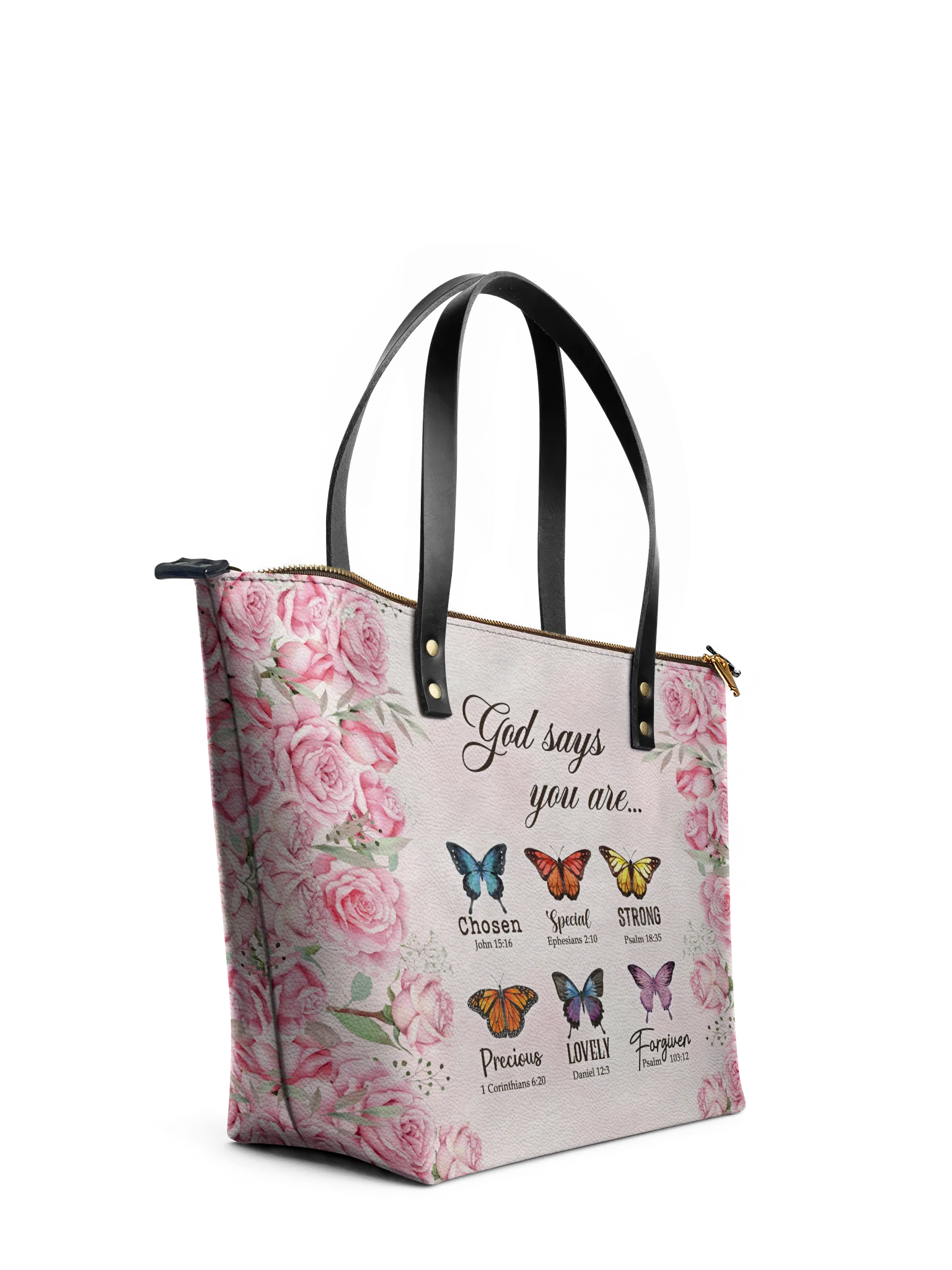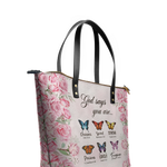 This tote bag is spacious and practical, easily fitting 2 large print Bibles, a 13" laptop, books, and daily must-haves.