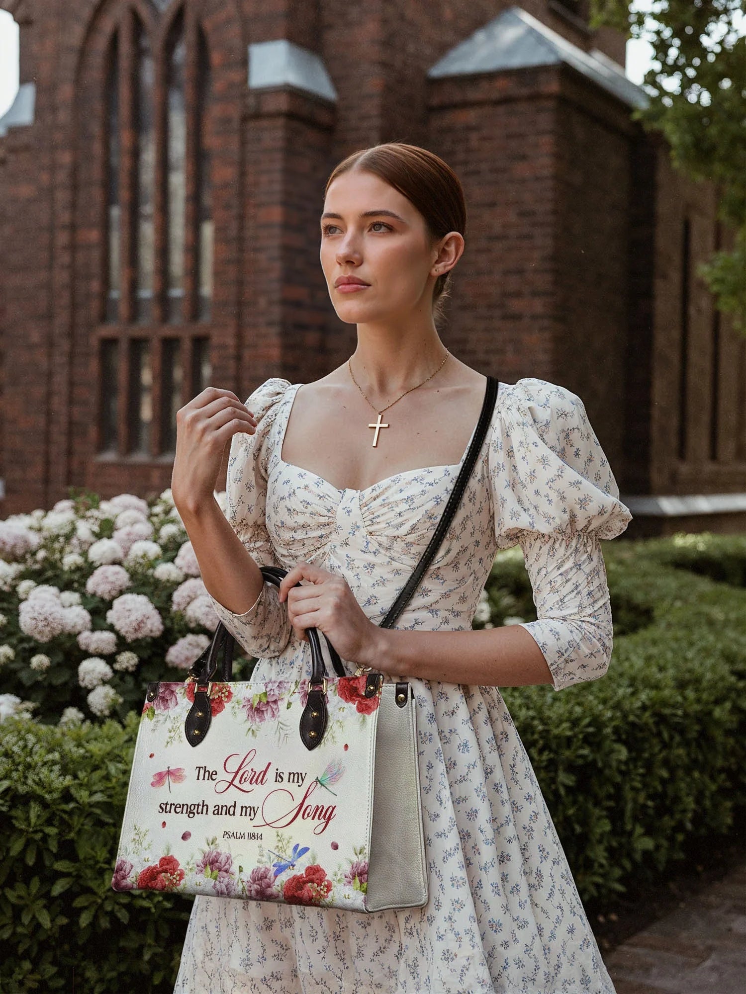 Let your faith shine with this beautifully crafted handbag, inspired by Psalm 118:14.