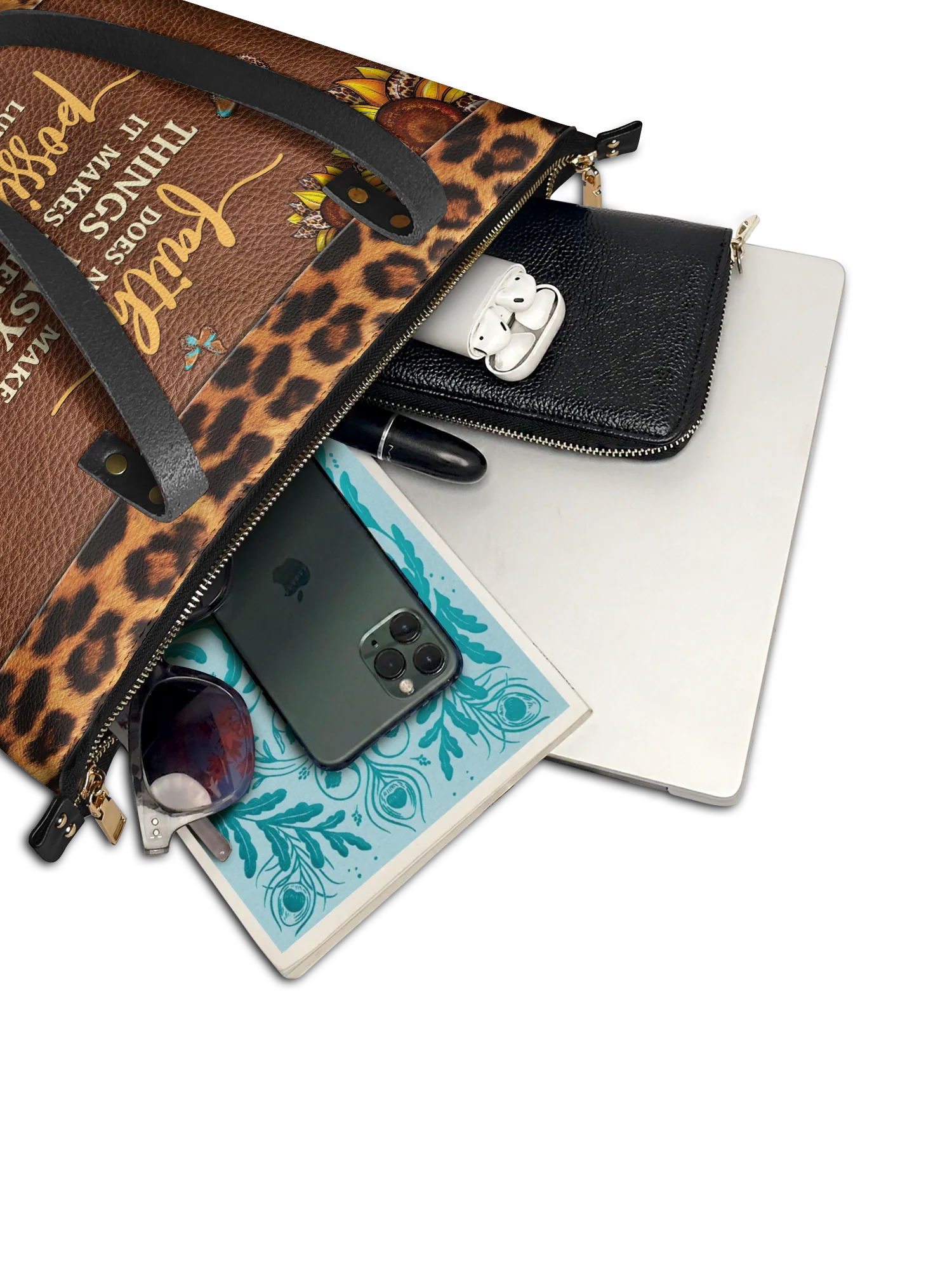 This handbag is spacious yet stylish, fitting up to 3 Bibles, a 14" laptop, books, wallet, and more.