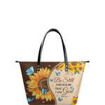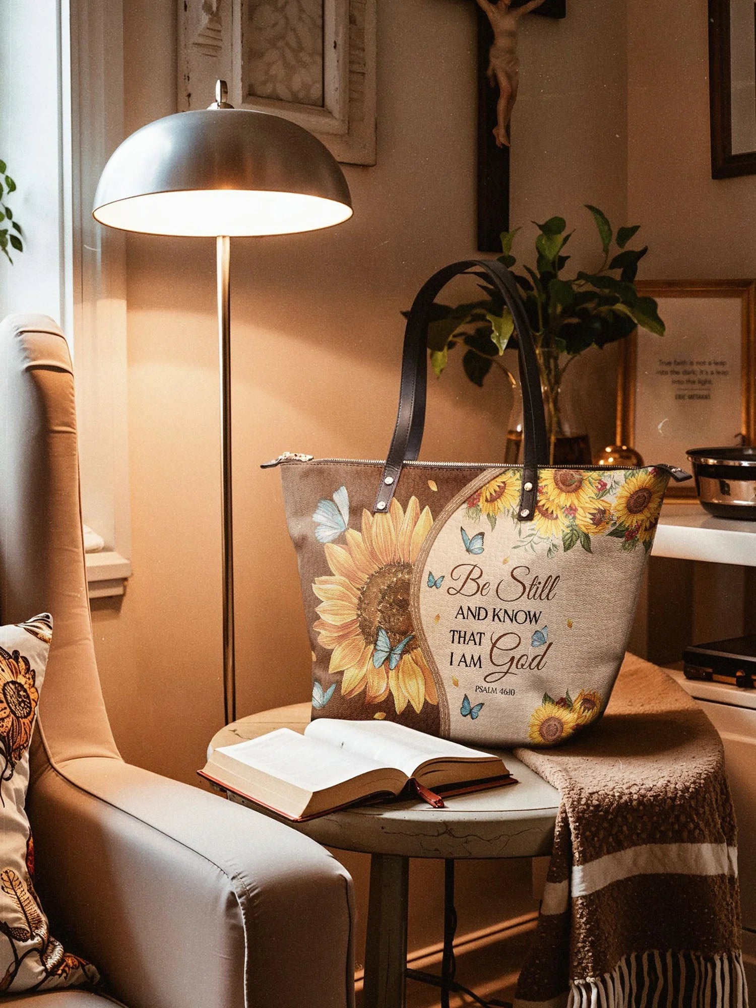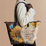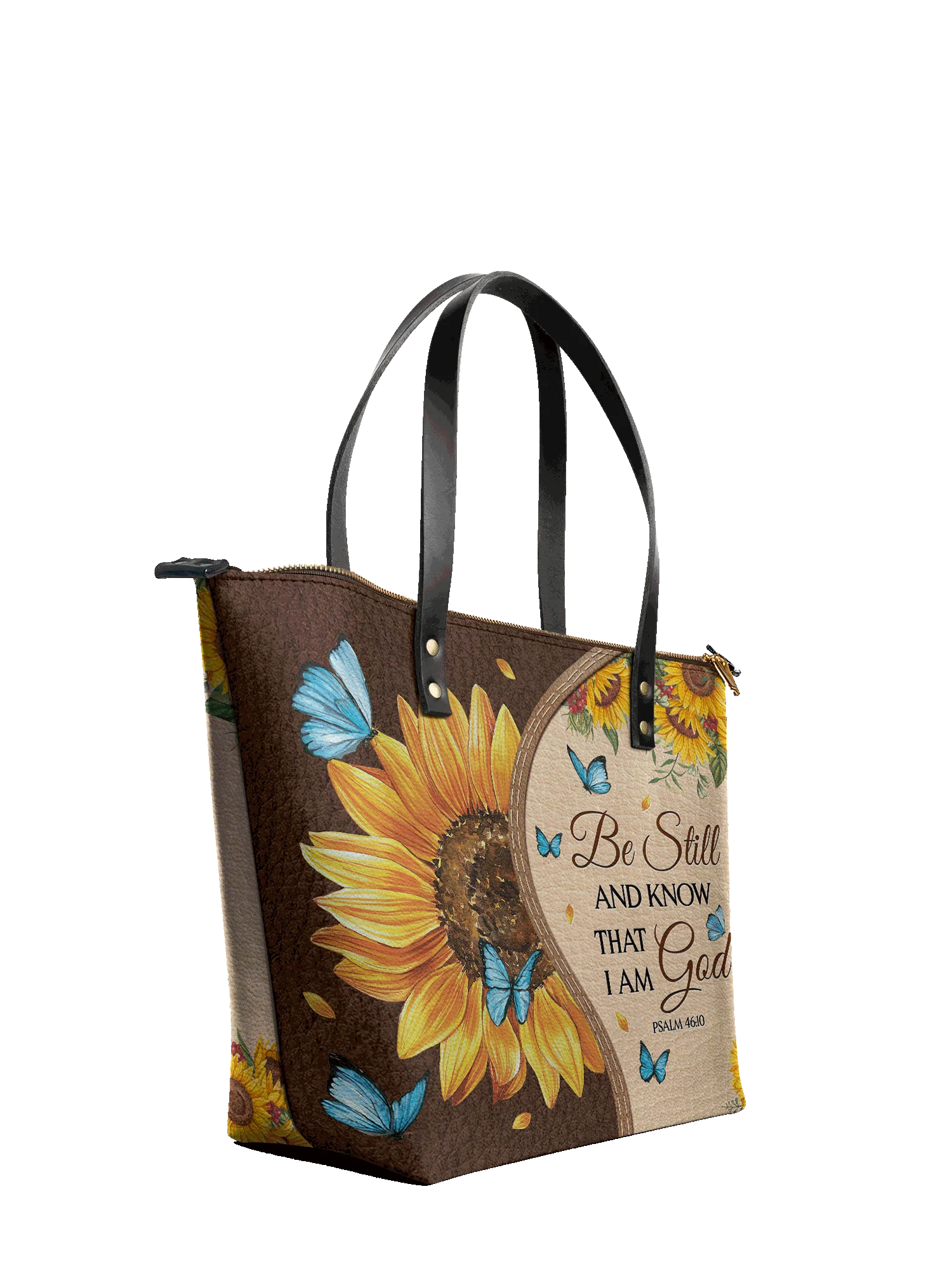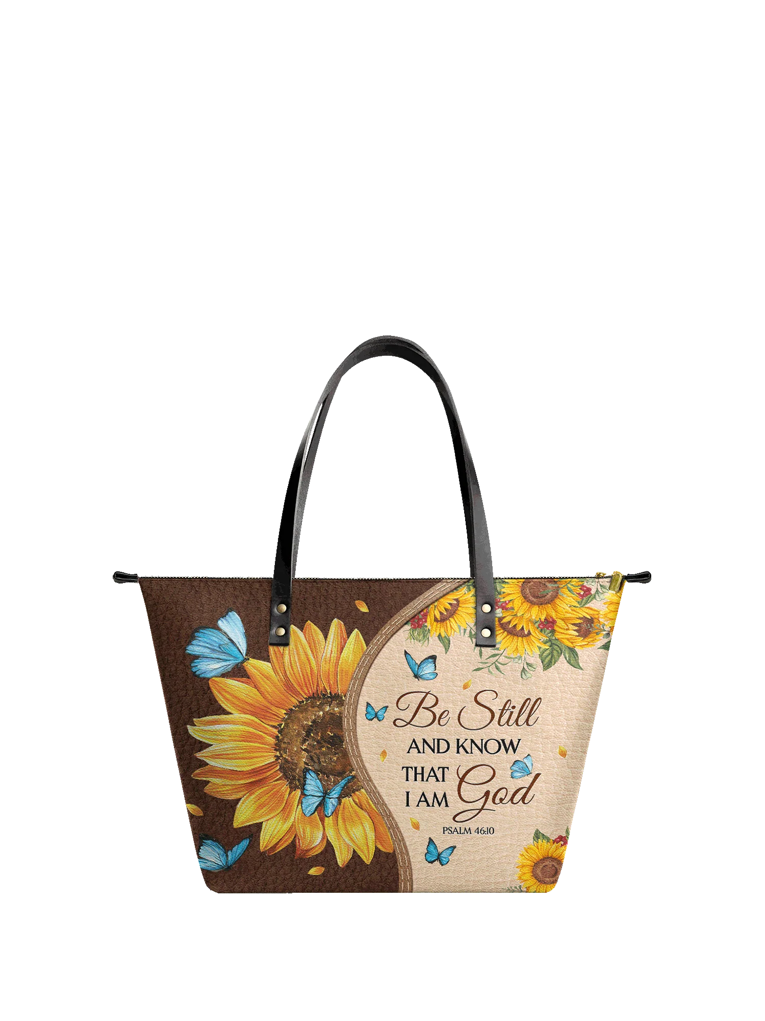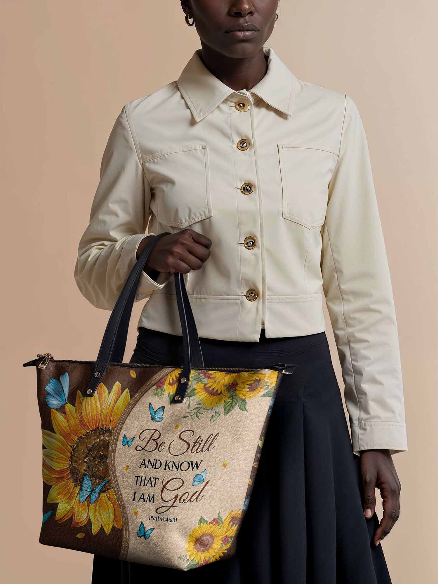 "Presence" - Psalm 46:10 Leather Tote Bag