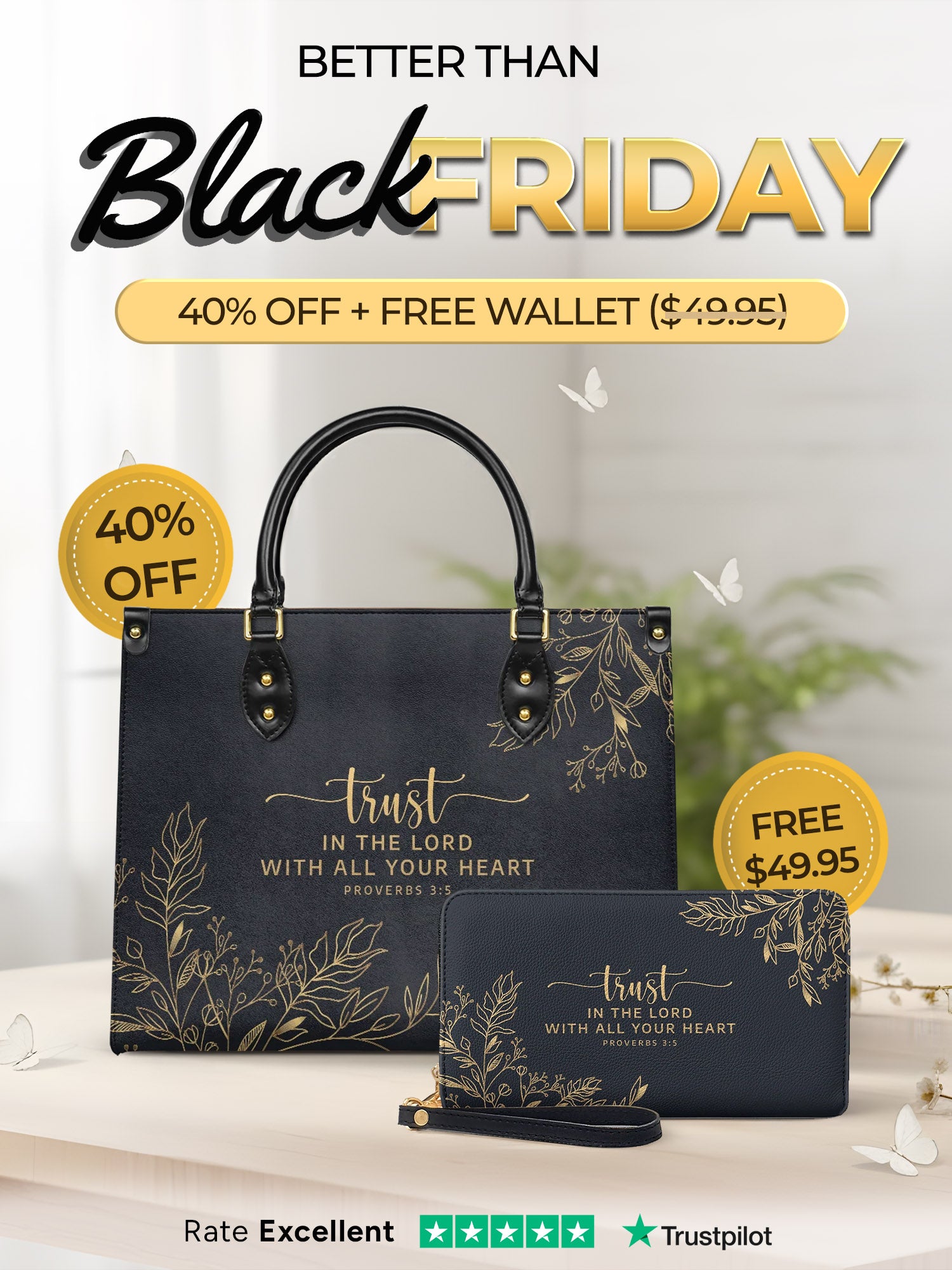Trust in the Lord’s plan with this elegantly designed handbag, inspired by Proverbs 3:5.